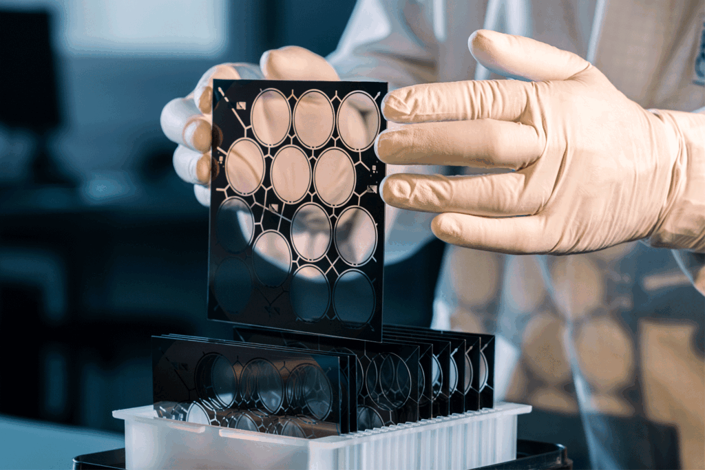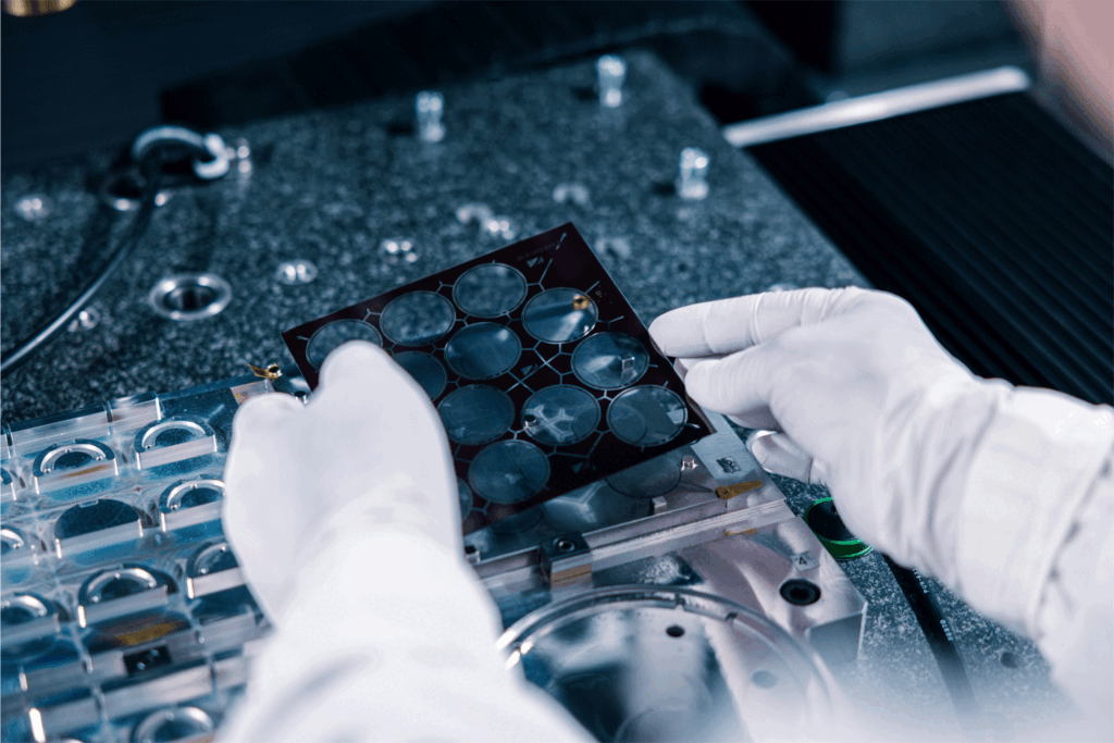 Hergestellt wird die Licht in Strom umwandelnde Wabenstruktur bei Nivarox in La Chaux-de-Fonds. Dass es um Hightech geht, wird deutlich, wenn man durch die Produktionsräume geht.