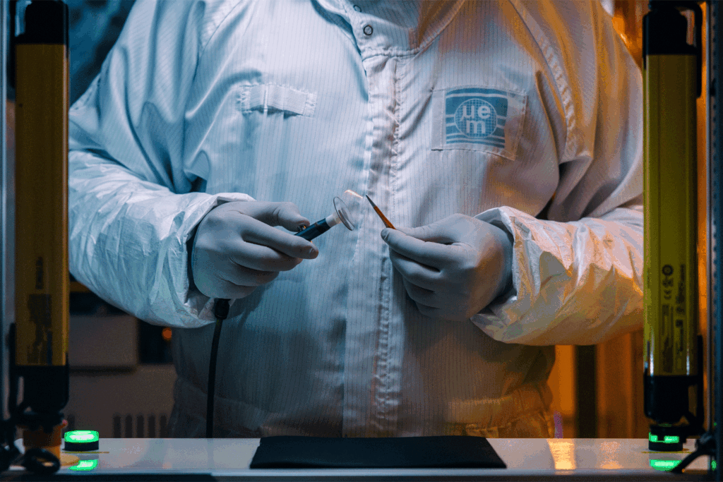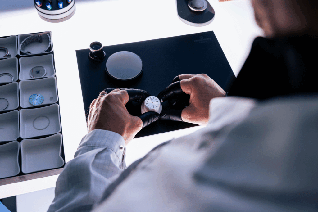 Darf man die selbst entwickelten Maschinen noch schutzlos bestaunen, so kann man die menschliche Arbeit an Lightmaster lediglich durch Fensterscheiben betrachten, hinter denen von Mitarbeitern in Schutzbekleidung die notwendigen Herstellungsschritte durchgeführt werden, bis hin zur Qualitätskontrolle, bei der jedes einzelne mit der Solarstruktur bestückte Uhrenglas geprüft wird. Erst dann gelangt ist in die Uhrenmontage, wo die „PRC 100 Solar“ entsteht.